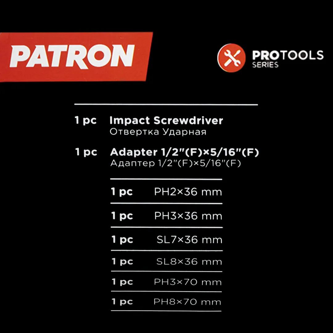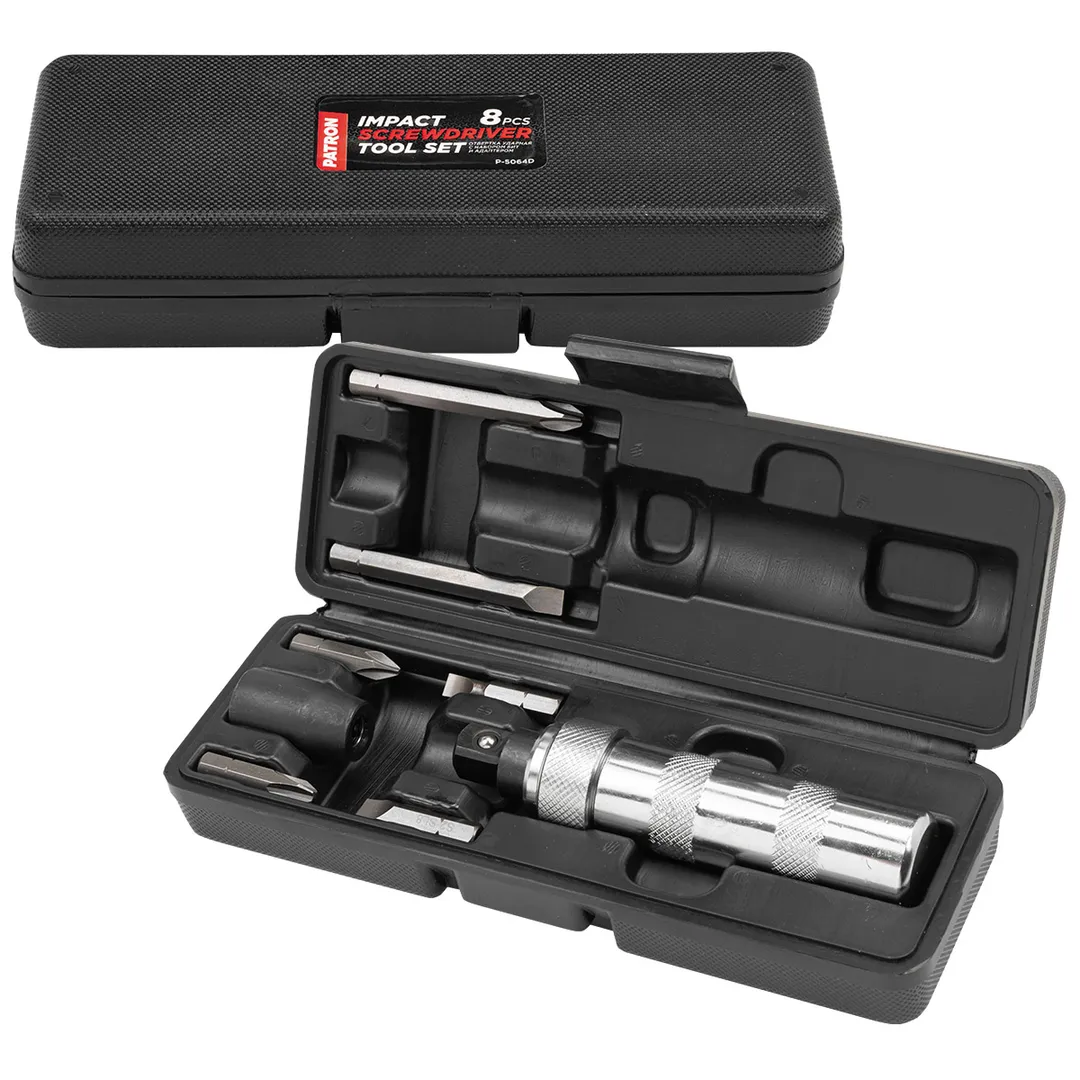 Отвертка ударная с набором бит PH, SL и адаптером 8 пр PATRON P-5064D