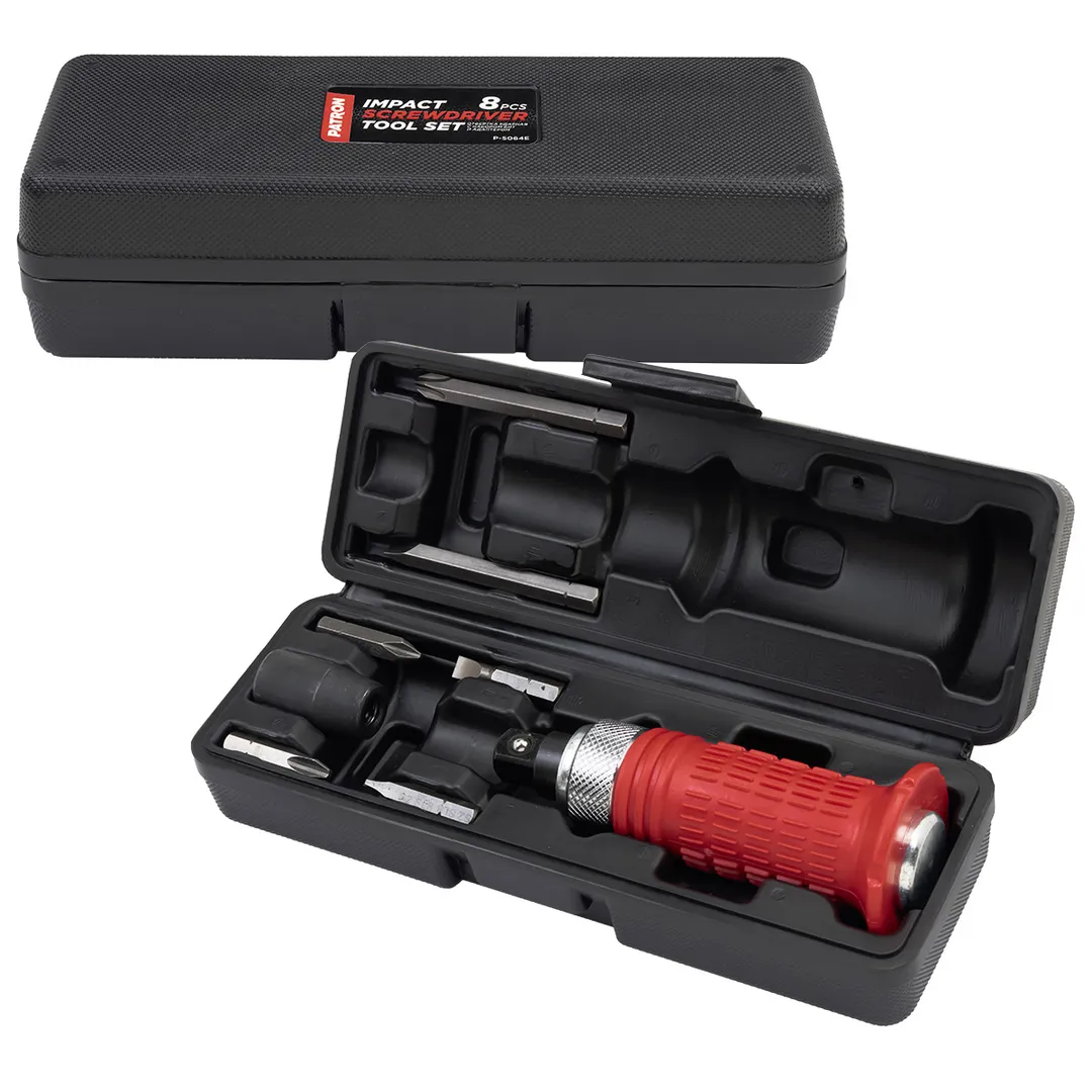 Отвертка ударная с набором бит PH, SL и адаптером 8 пр PATRON P-5064E