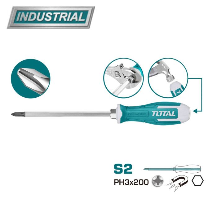 Отвертка крестовая PH3 200 мм ударная TOTAL THGSPH32006, описание: