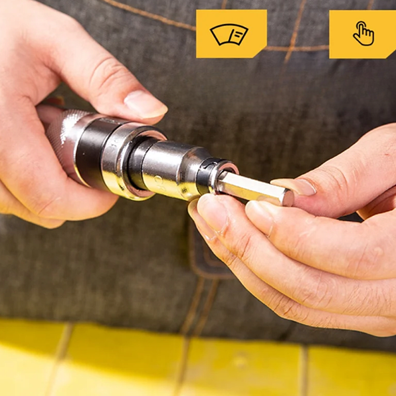 Ударно-поворотная отвертка Deli DL8901 оснащена хромованадиевой рабочей частью, что обеспечивает прочность и долговечность инструмента.