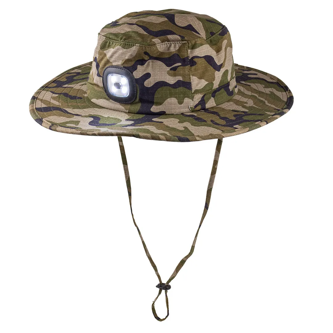 Панама туристическая с фонариком. Размер: one size. Состав: 100% хлопок. Тактическая панама имеет высокую прочность, хорошо отмывается и не деформируется. Благодаря свойствам ткани, из которой изготовлена панама с широкими полями, она легкая, прочная и удобная, не мнется, пропускает воздух. Уникальность данной туристической панамы в том, что в нее встроен светодиодный LED фонарик. Фонарик съёмный, имеет три режима подсветки (100 процентов, 75 процентов и 50 процентов). Подзаряжается через USB-разъем от сети, компьютера или powebank. Фонарик имеет легкий литиевый аккумулятор и практически неощутим. Панама имеет дополнительную фиксацию на голове за подбородок с помощью затягивающегося шнурка. Камуфляжная панама подойдет для охоты и рыбалки, для спорта и туризма. Панама комфортна в ношении – швы спрятаны за специальными полосками ткани, чтобы панама военная не давила на голову и не натирала при длительной носке. Также есть затягивающийся шнурок для регулировки размера. Панама имеет поля (8,5 см), которые защитят от солнечного излучения, солнечных ожогов и солнечного удара, а также от непогоды.Преимущества работы с нами