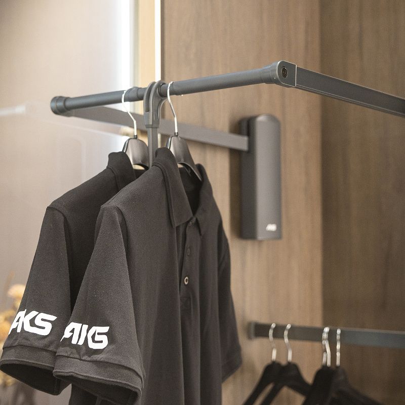Пантограф VENTO помогает эффективно организовать хранение одежды в верхнем пространстве шкафа или гардеробной комнаты, максимально и с комфортом использовать труднодоступные зоны. Стильный дизайн, компактная и лаконичная конструкция. Цвет: черный Возможность регулировки по ширине 520-670 мм позволяет устанавливать пантограф в корпус с нестандартной шириной. Высококачественные материалы - алюминий, сталь, пластик. Газовый механизм с доводчиком на спуск и доводчиком на подъем (20 000 циклов при нагрузке 12 кг) обеспечивает мягкое и комфортное выдвижение и закрывание. Рекомендованная нагрузка на пантограф 12 кг. В комплекте: подъемник - 2 компл, штанга, труба ручки, ручка, соединители - 2 шт, ключ шестигранный, крепеж, инструкция AKSТехнические характеристики: