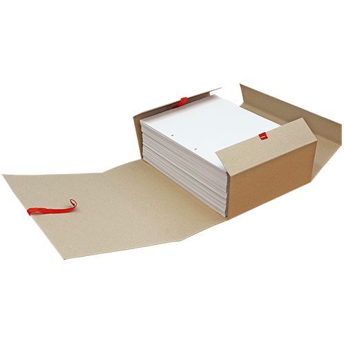 Папки на завязках изготовлены из немелованного картона повышенной плотности с различной шириной корешка от 40 до 150 мм, что позволяет в одном изделии хранить определенное количество бумаг: до 1500 листов в папке. Документы в папке удерживаются клапанами с завязками. Представлены в формате А4. Производство - Республика Беларусь.