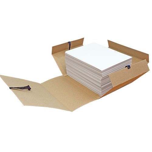 Папки на завязках изготовлены из немелованного картона повышенной плотности с различной шириной корешка от 40 до 150 мм, что позволяет в одном изделии хранить определенное количество бумаг: до 1500 листов в папке. Документы в папке удерживаются клапанами с завязками. Представлены в формате А4. Производство - Республика Беларусь.