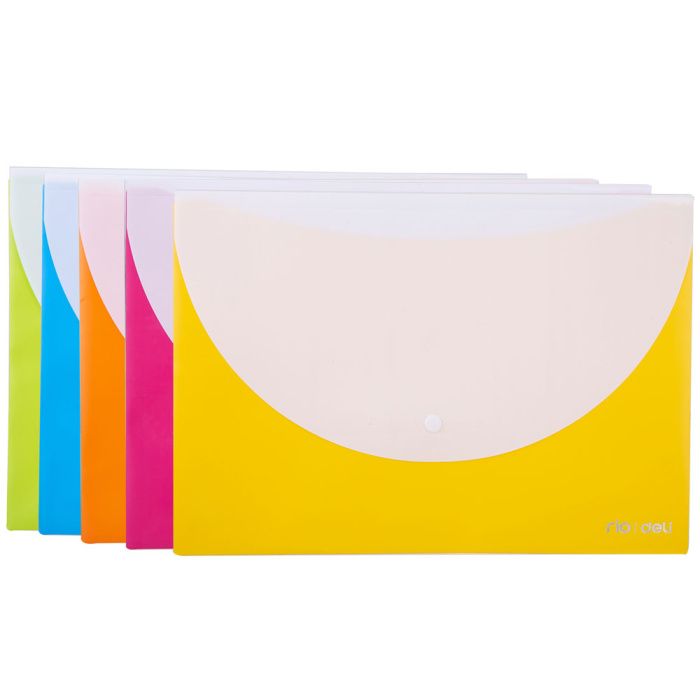 Папка-конверт на кнопке "Deli", A4, ассорти