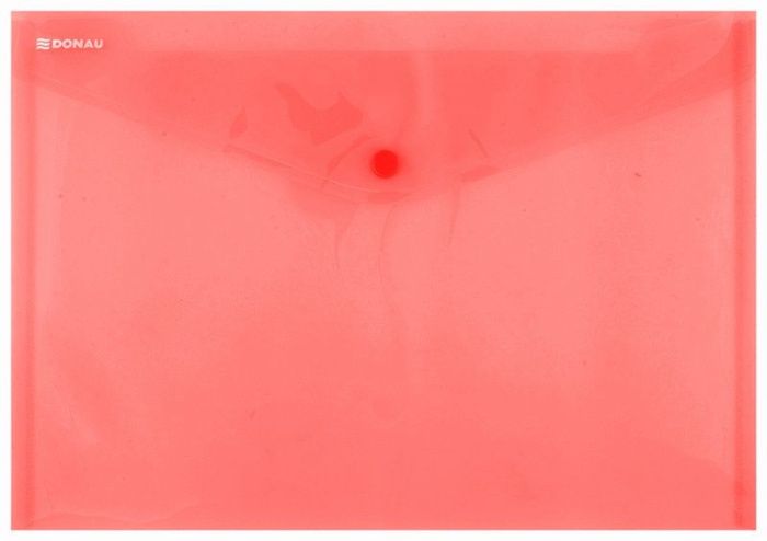 Папка-конверт на кнопке "Donau", A4, красный прозрачный