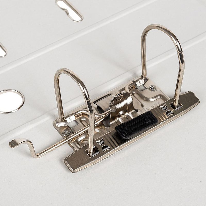 Папка регистратор выполнена из картона. С внешней стороны папка покрыта поливинилхлоридом, что позволяет предотвратить от повреждений и загрязнений. Папка оснащена металлическим уголком. Сшивающий механизм оснащен удобным рычажком. Также данная папка может быть идентифицирована с помощью сменного корешка. Эстетичный вид данной папки отлично впишется в интерьер.
