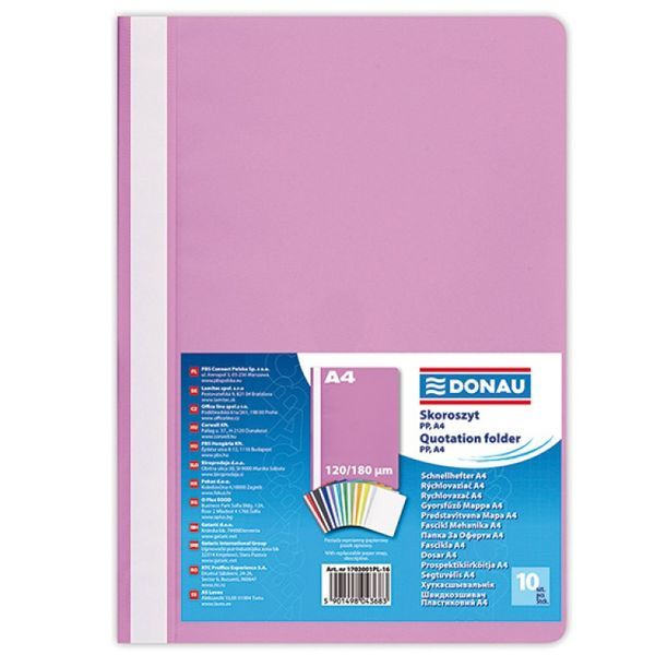 Папка-скоросшиватель "Donau", A4, розовый