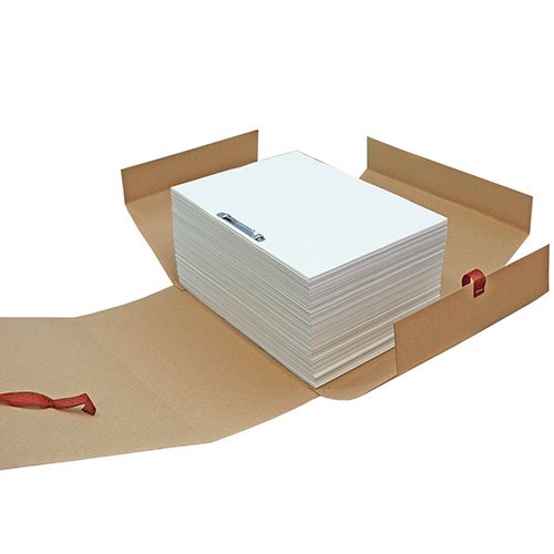 Папки-скоросшиватели на завязках изготовлены из немелованного картона повышенной плотности с различной шириной корешка от 40 до 150 мм, что позволяет в одном изделии хранить определенное количество бумаг: до 1500 листов в папке. Документы в папке удерживаются клапанами с завязками. Ключевое отличие этих папок от стандартных папок-скоросшивателей - наличие креплений (клапанов) и завязок для дополнительной фиксации документов. Имеется усовершенствованный механизм для сшивания европейского качества. Представлены в формате А4. Производство - Республика Беларусь.