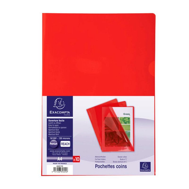 Папка-уголок "Exacompta", А4, 130 мк, прозрачный, красный