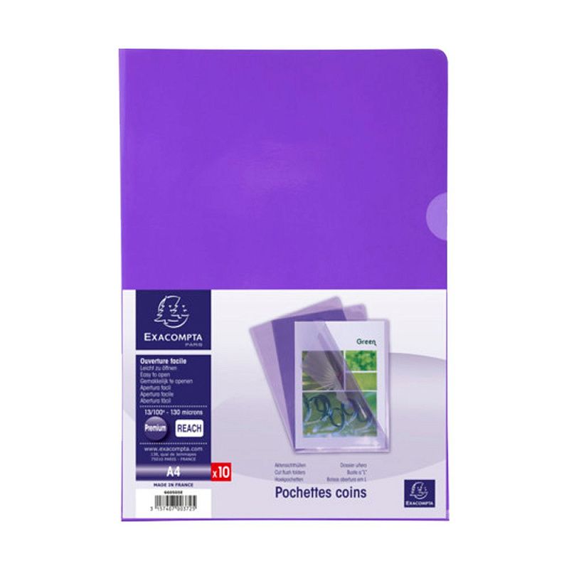 Папка-уголок "Exacompta", А4, 130 мк, ПВХ, прозрачный, фиолетовый
