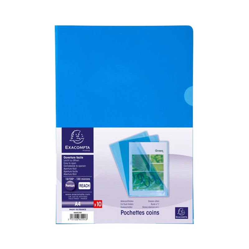 Папка-уголок "Exacompta", А4, 130 мк, ПВХ, прозрачный, синий