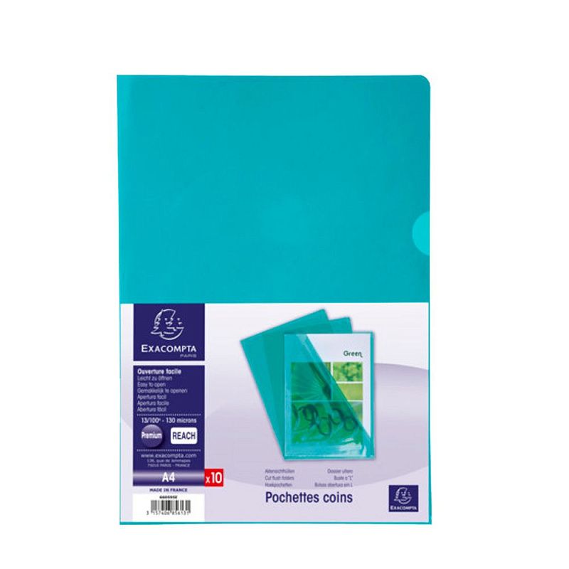 Папка-уголок "Exacompta", А4, 130 мк, ПВХ, прозрачный, зеленый