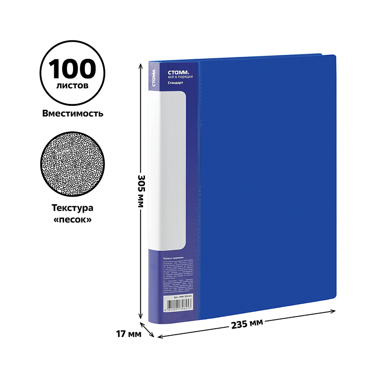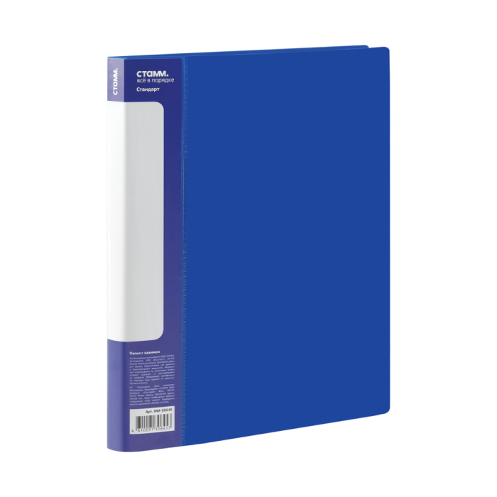 Папка В-611 "Стандарт" с зажимом и карманом, пластик , синий