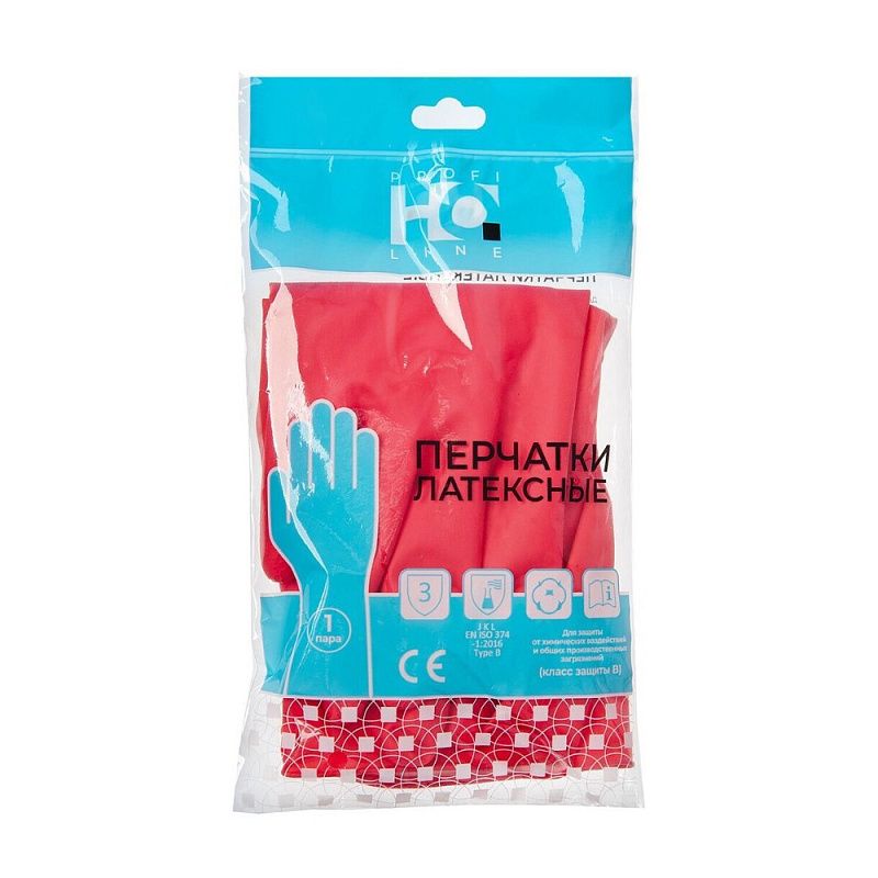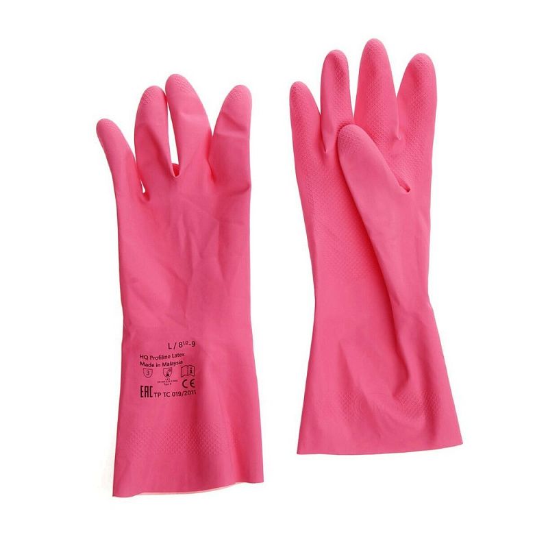 Перчатки латексные HQ Profiline, р-р L, с х/б покрытием, красный