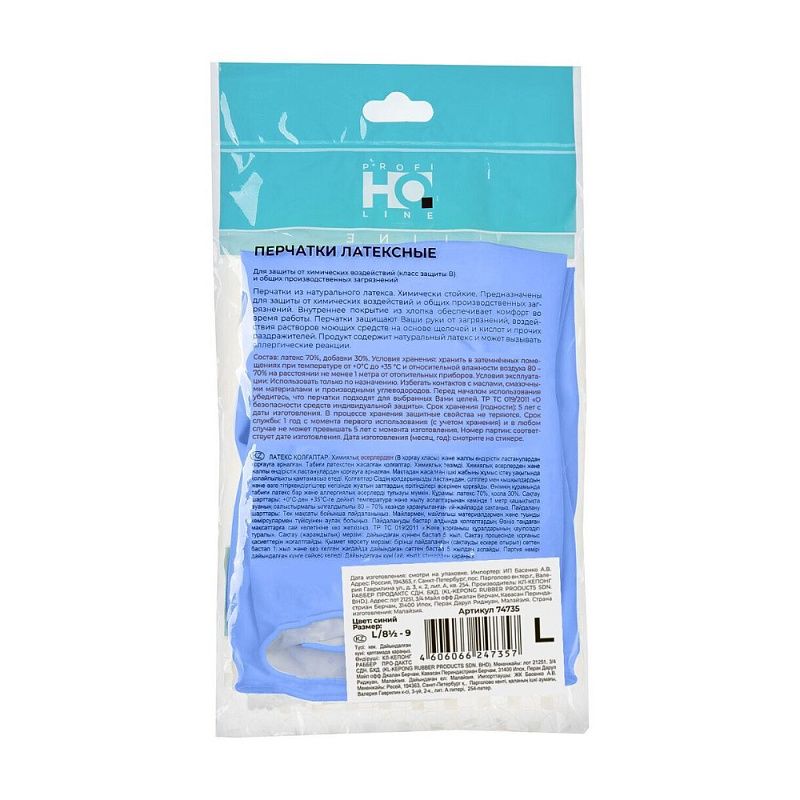 Перчатки латексные HQ Profiline, р-р L, с х/б покрытием, синий