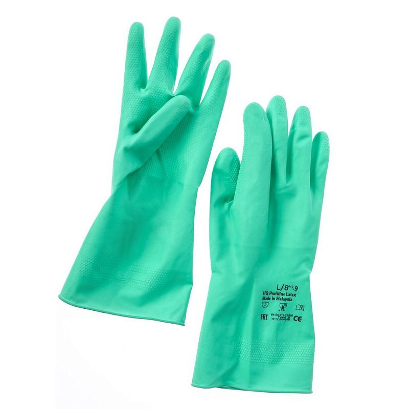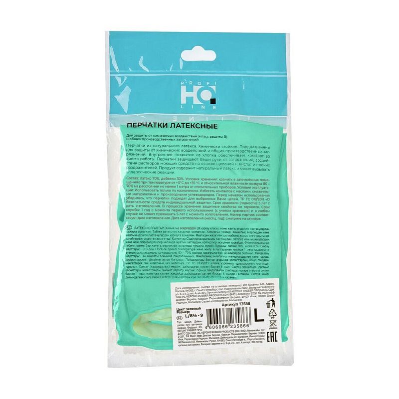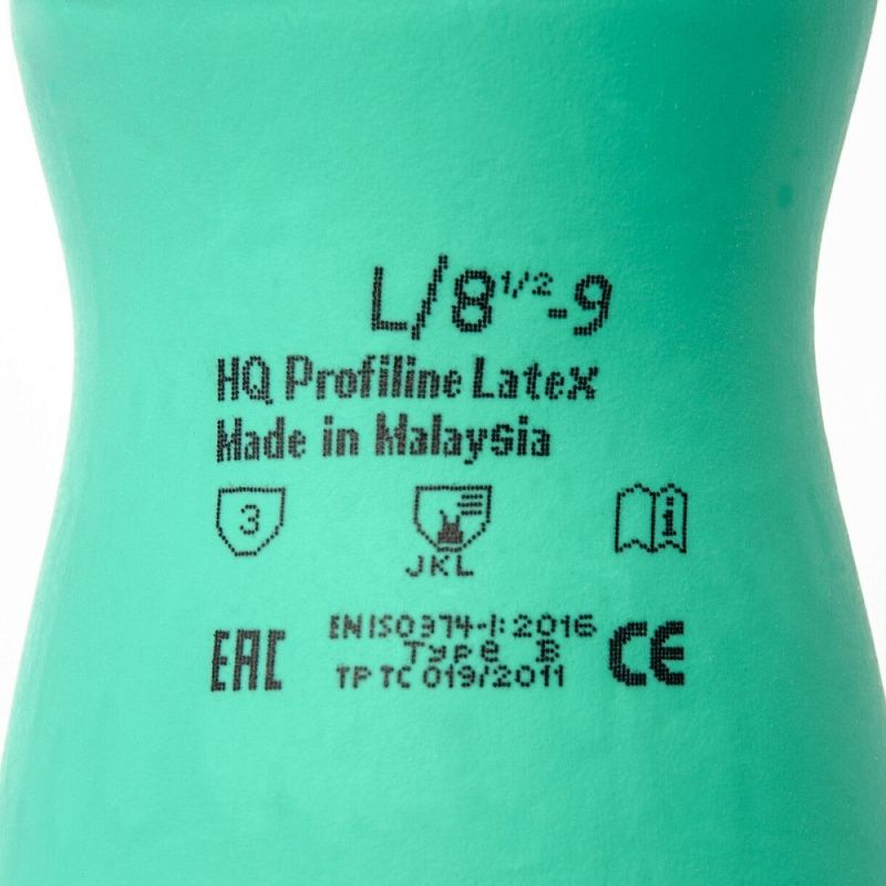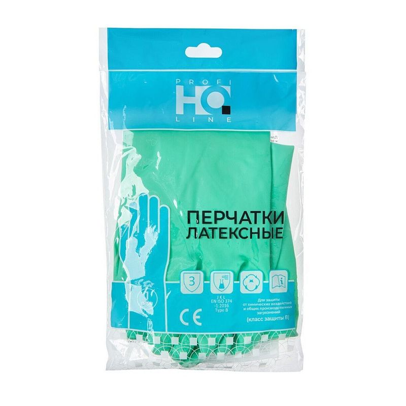 Перчатки латексные HQ Profiline, р-р L, с х/б покрытием, зеленый