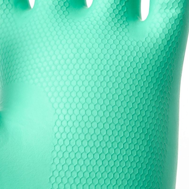 Химически стойкие. Внутреннее покрытие из хлопка обеспечивает комфорт во время работы. Перчатки защищают руки от загрязнений, воздействия растворов моющих средств на основе щелочей и кислот и может вызвать аллергические реакции.