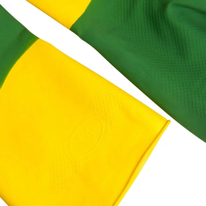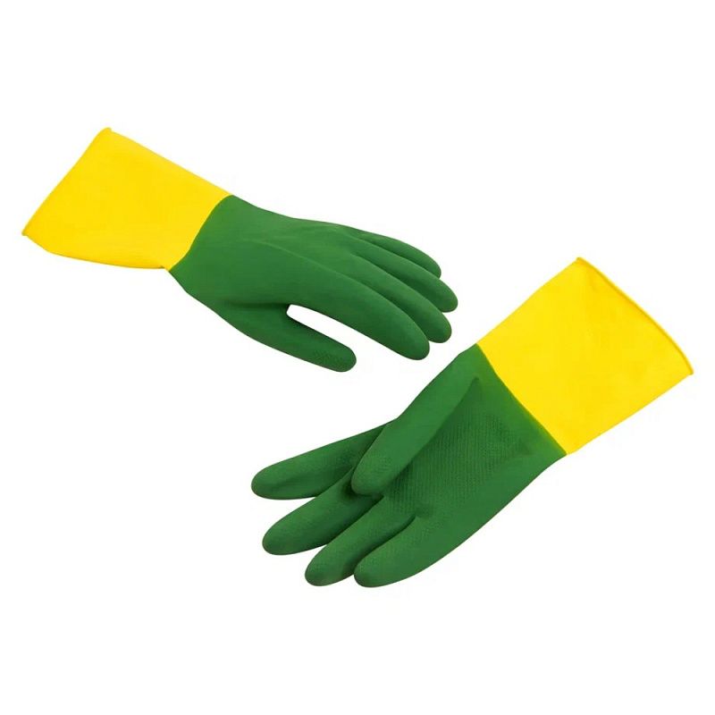 Перчатки латексные хозяйственные Zaubex БИКОЛОР, усиленные, р-р M, зеленый, желтый