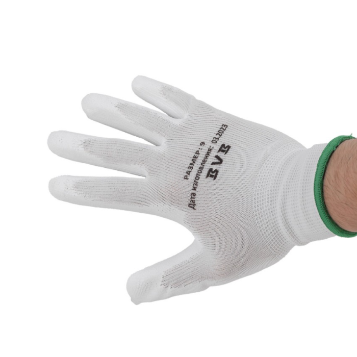 Перчатки нейлоновые с полиуретановым покрытием BVB, р-р 10, белый