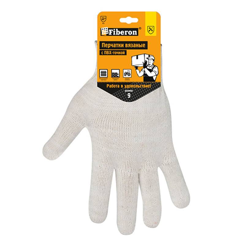 Перчатки трикотажные х/б, с ПВХ покрытием Точка из 6-и нитей, 10 кл. вязки, белый, в и/у