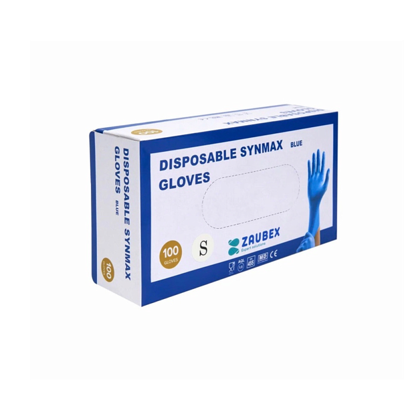 Перчатки виниловые Zaubex Synmax, одноразовые, р-р S 100 шт/уп, голубой