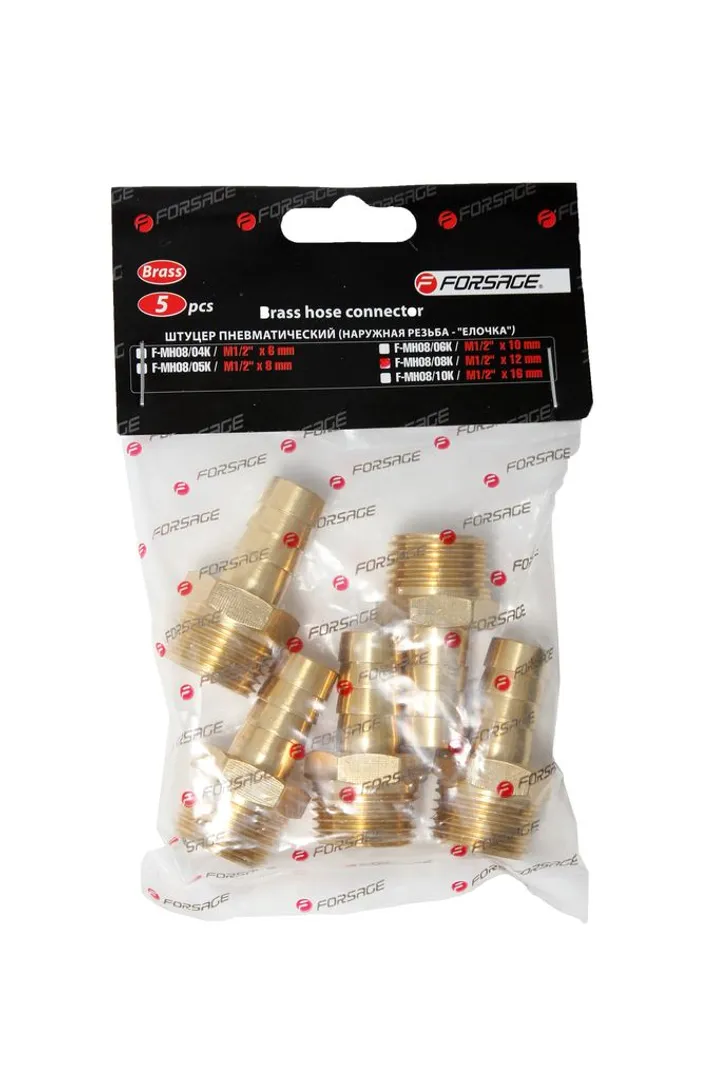 Переходник резьбовой, наруж. резьба 1/2"-"елочка" 12 мм, к-т 5 шт Forsage F-MH08/08K