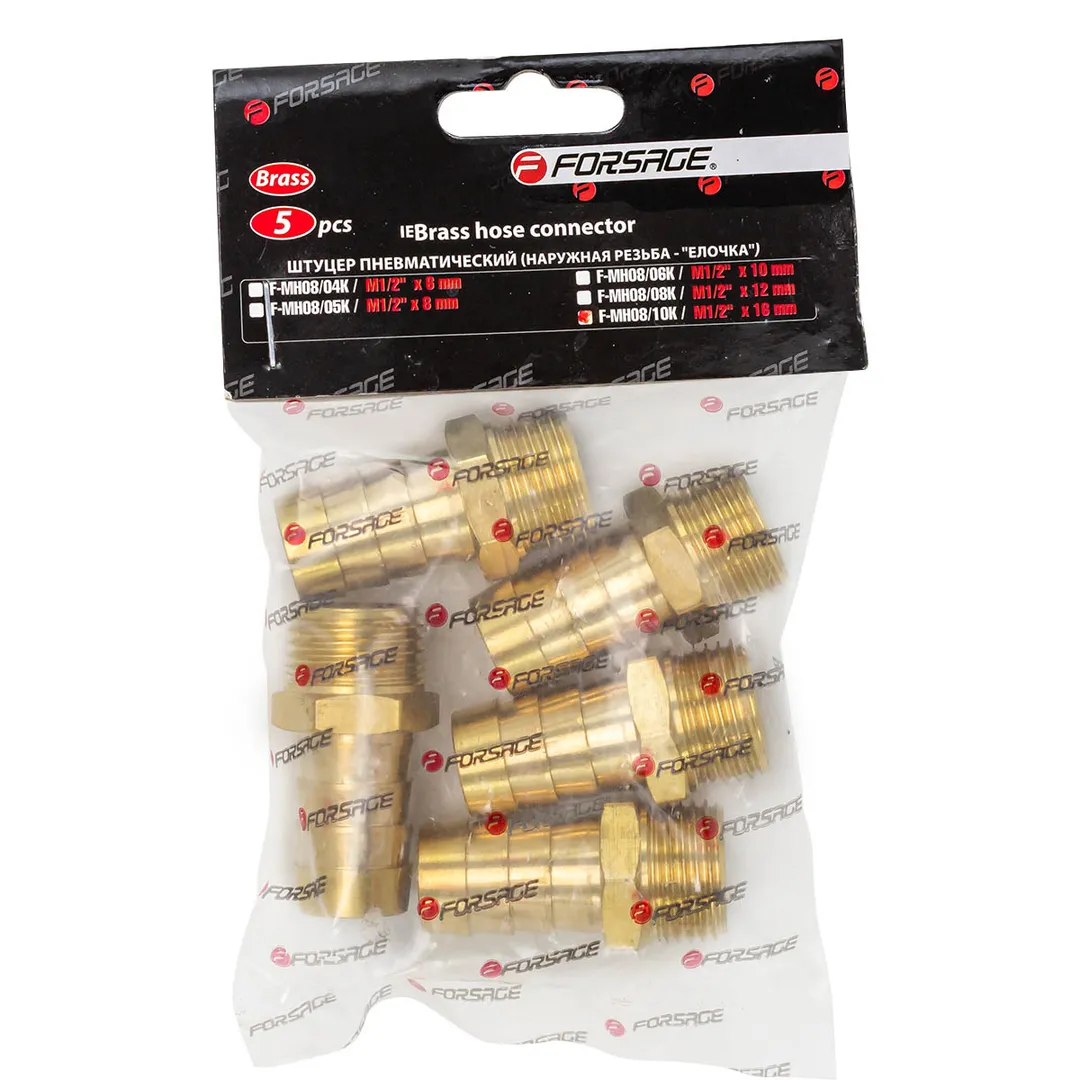 Переходник резьбовой, наруж. резьба 1/2"-"елочка" 16 мм, к-т 5 шт Forsage F-MH08/10K