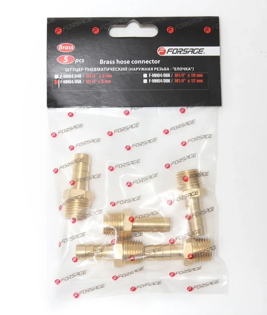 Переходник резьбовой, наруж. резьба 1/4"-"елочка" 12 мм, к-т 5 шт Forsage F-MH04/08K