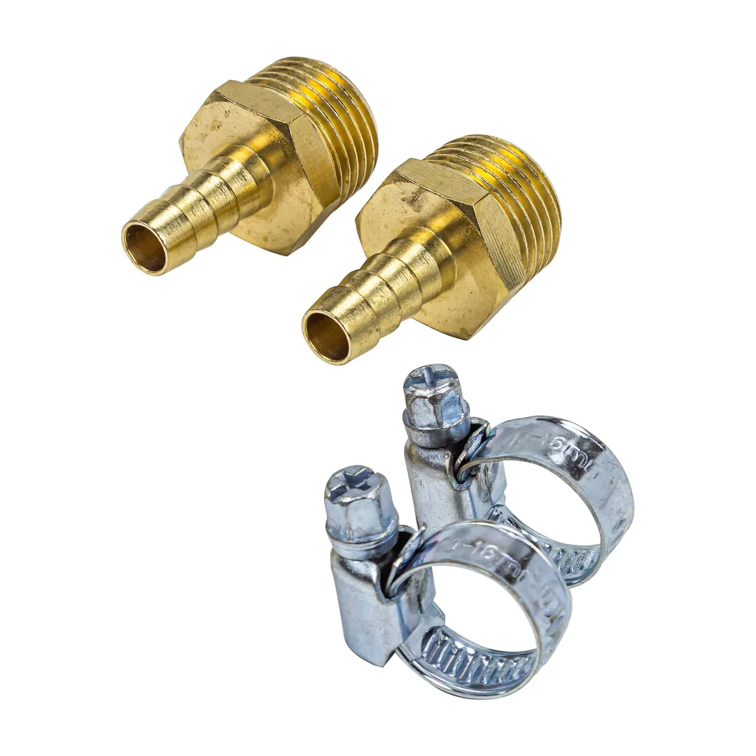 Переходник резьбовой, наруж. резьба 3/8"-"елочка" 8 мм, к-т 2 шт + хомуты для крепежа, в блистере RockForce RF-MH06/05