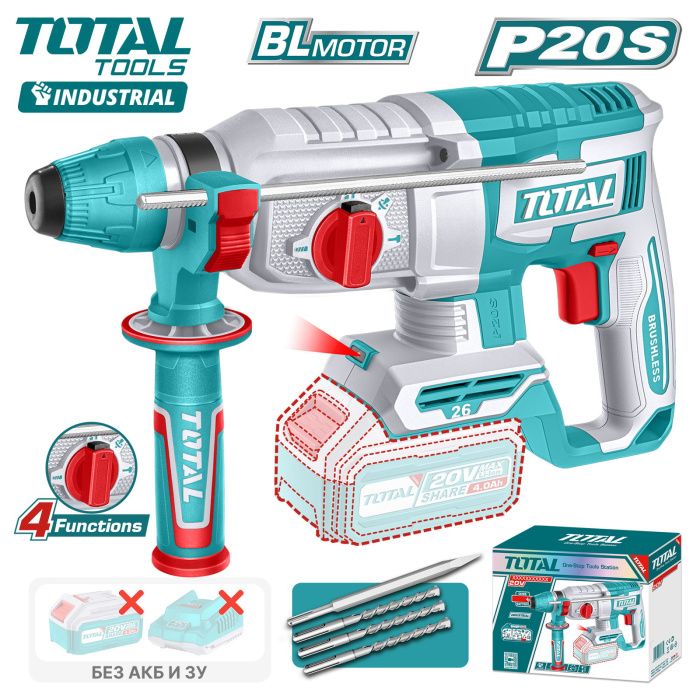 Перфоратор аккумуляторный TOTAL TRHLI20268, описание: