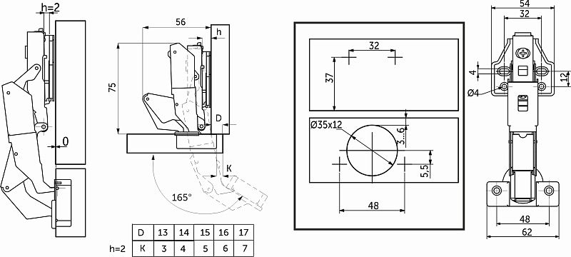 Петля 165° накладная с доводчиком 48мм h2 clip-on черный никель, саморезы, заглушки, 0-е вхождение, упак. = 2 шт., PRIME by AKS 125480, описание: