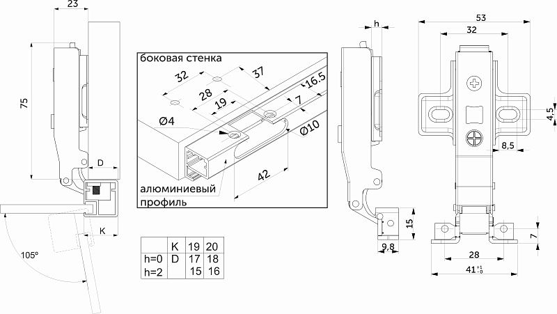 Петля д/алюм.рамки Z-1 накладная без пружины h2 clip-on черная, саморезы, заглушки, упак. = 2 шт., PRIME by AKS 114939, технические характеристики: