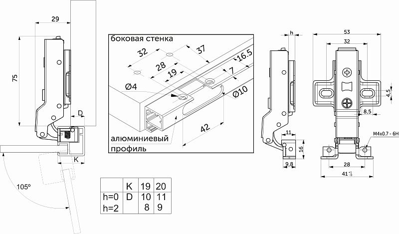 Петля д/алюм.рамки Z-1 полунакладная с доводчиком h2 clip-on черная, саморезы, заглушки, упак. = 2 шт., PRIME by AKS 114932, технические характеристики: