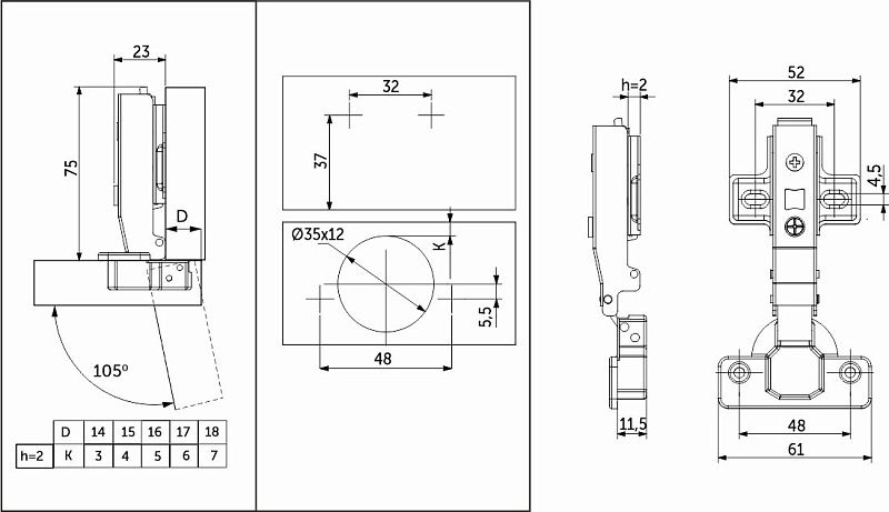 Петля накладная без пружины 48мм h2 clip-on PRIME by AKS (саморезы, заглушки) (упак. -2шт. )Технические характеристики: