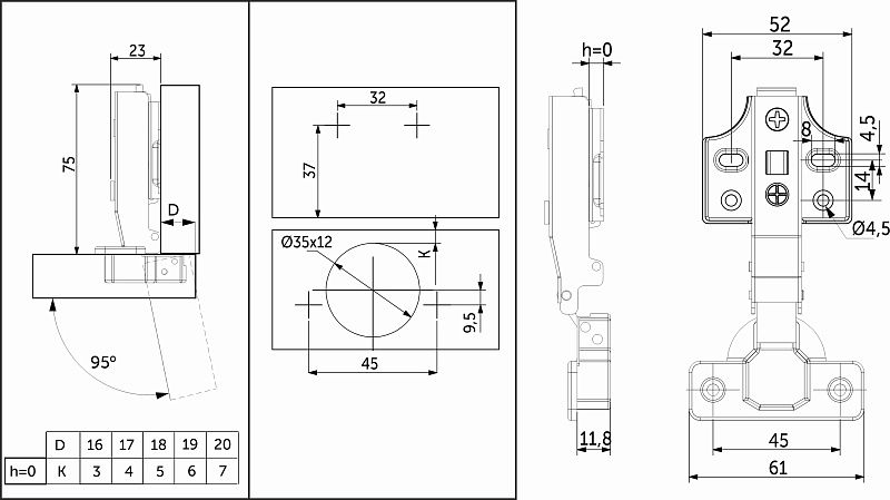 Петля накладная c доводчиком PRIME by AKS для фасадов толщиной до 28 мм — это сочетание надежности, функциональности и эстетики. Созданы в соответствии с международными стандартами для производителей качественной мебели сегмента «средний+». Изготовлены из высококачественной холоднокатанной стали, имеют никелевое покрытие и усиленную пружину, что обеспечивает их надёжность и долговечность. Эти петли идеально подходят для создания стильной и долговечной мебели, отвечающей международным стандартам, а также гарантируют бесперебойную работу механизма на протяжении 100 000 циклов открывания/закрывания, что подтверждается проверкой в собственной испытательной лаборатории. Особая конструкция механизма доводчика гарантирует бесшумное закрытие фасадов, срабатывая при его открытии на угол от 5°. Петли PRIME by AKS имеют эксцентриковую регулировку по глубине, систему двухпозиционного отрывания TWO-WAY, а также прочную систему быстрого монтажа и демонтажа ответной планки CLIP-ON. ДаннаяПетля подходит для фасадов толщиной от 15 до 28 мм, имеет межцентровое расстояние между отверстиями в чашке в 45мм, а также монтажную планку на четыре отверстия высотой h0 для более надежного крепления петли к корпусу мебели.Петля PRIME by AKS имеет двухслойное гальваническое покрытие (с медным подслоем), что обеспечивает надежную защиту от коррозии. Протестирована в солевом тумане более чем 48 часов без каких-либо коррозионных изменений. Вся линейка петель имеет индивидуальную упаковку по 2 шт. В комплект входят:Петля, монтажная планка, декоративные заглушки чашки и плеча петли, а также саморезы 4*16мм. Наличие широкого диапазона регулировки по горизонтали, глубине и вертикали в ±2мм, позволит минимизировать все неточности монтажа.Петля с доводчиком PRIME by AKS может быть установлена со специальным ограничителем угла открывания до 86° (код 116 236). Это поможет избежать столкновений фасада со стеной или с соседними модулями. Внимание: для корректного выставления необходимых зазоров обратите внимание на таблицы наложений фасада на корпус ящика!Технические характеристики: