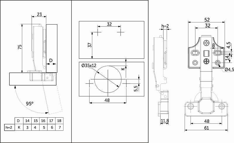 Петля накладная c доводчиком PRIME by AKS для фасадов толщиной до 28 мм — это сочетание надежности, функциональности и эстетики. Созданы в соответствии с международными стандартами для производителей качественной мебели сегмента «средний+». Изготовлены из высококачественной холоднокатанной стали, имеют никелевое покрытие и усиленную пружину, что обеспечивает их надёжность и долговечность. Эти петли идеально подходят для создания стильной и долговечной мебели, отвечающей международным стандартам, а также гарантируют бесперебойную работу механизма на протяжении 100 000 циклов открывания/закрывания, что подтверждается проверкой в собственной испытательной лаборатории. Особая конструкция механизма доводчика гарантирует бесшумное закрытие фасадов, срабатывая при его открытии на угол от 5°. Петли PRIME by AKS имеют эксцентриковую регулировку по глубине, систему двухпозиционного отрывания TWO-WAY, а также прочную систему быстрого монтажа и демонтажа ответной планки CLIP-ON. ДаннаяПетля подходит для фасадов толщиной от 15 до 28 мм, имеет межцентровое расстояние между отверстиями в чашке в 48мм, а также монтажную планку на четыре отверстия высотой h2 для более надежного крепления петли к корпусу мебели.Петля PRIME by AKS имеет двухслойное гальваническое покрытие (с медным подслоем), что обеспечивает надежную защиту от коррозии. Протестирована в солевом тумане более чем 48 часов без каких-либо коррозионных изменений. Вся линейка петель имеет индивидуальную упаковку по 2 шт. В комплект входят:Петля, монтажная планка, декоративные заглушки чашки и плеча петли, а также саморезы 4*16мм. Наличие широкого диапазона регулировки по горизонтали, глубине и вертикали в ±2мм, позволит минимизировать все неточности монтажа.Петля с доводчиком PRIME by AKS может быть установлена со специальным ограничителем угла открывания до 86° (код 116 236). Это поможет избежать столкновений фасада со стеной или с соседними модулями. Внимание: для корректного выставления необходимых зазоров обратите внимание на таблицы наложений фасада на корпус ящика!Технические характеристики: