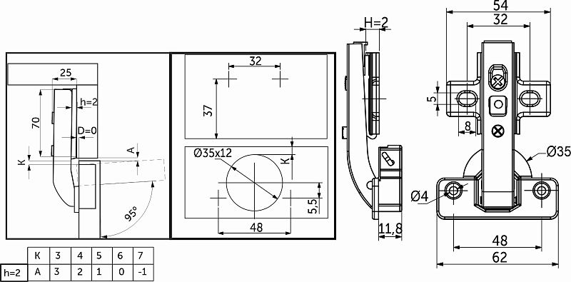 Петля под фальшпанель 90° с доводчиком 48мм h2 clip-on AKS 118111, описание: