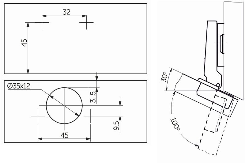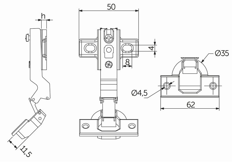 Петля угловая -30° с пружиной 45мм h4 slide-on AKS 11221, описание: