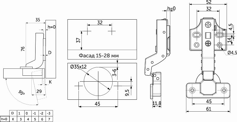 Петля внутренняя c доводчиком PRIME by AKS для фасадов толщиной до 28 мм — это сочетание надежности, функциональности и эстетики. Созданы в соответствии с международными стандартами для производителей качественной мебели сегмента «средний+». Изготовлены из высококачественной холоднокатанной стали, имеют никелевое покрытие и усиленную пружину, что обеспечивает их надёжность и долговечность. Эти петли идеально подходят для создания стильной и долговечной мебели, отвечающей международным стандартам, а также гарантируют бесперебойную работу механизма на протяжении 100 000 циклов открывания/закрывания, что подтверждается проверкой в собственной испытательной лаборатории. Особая конструкция механизма доводчика гарантирует бесшумное закрытие фасадов, срабатывая при его открытии на угол от 5°. Петли PRIME by AKS имеют эксцентриковую регулировку по глубине, систему двухпозиционного отрывания TWO-WAY, а также прочную систему быстрого монтажа и демонтажа ответной планки CLIP-ON. ДаннаяПетля подходит для фасадов толщиной от 15 до 28 мм, имеет межцентровое расстояние между отверстиями в чашке в 45мм, а также монтажную планку на четыре отверстия высотой h0 для более надежного крепления петли к корпусу мебели.Петля PRIME by AKS имеет двухслойное гальваническое покрытие (с медным подслоем), что обеспечивает надежную защиту от коррозии. Протестирована в солевом тумане более чем 48 часов без каких-либо коррозионных изменений. Вся линейка петель имеет индивидуальную упаковку по 2 шт. В комплект входят:Петля, монтажная планка, декоративные заглушки чашки и плеча петли, а также саморезы 4*16мм. Наличие широкого диапазона регулировки по горизонтали, глубине и вертикали в ±2мм, позволит минимизировать все неточности монтажа.Петля с доводчиком PRIME by AKS может быть установлена со специальным ограничителем угла открывания до 86° (код 116 236). Это поможет избежать столкновений фасада со стеной или с соседними модулями. Внимание: для корректного выставления необходимых зазоров обратите внимание на таблицы наложений фасада на корпус ящика!Технические характеристики: