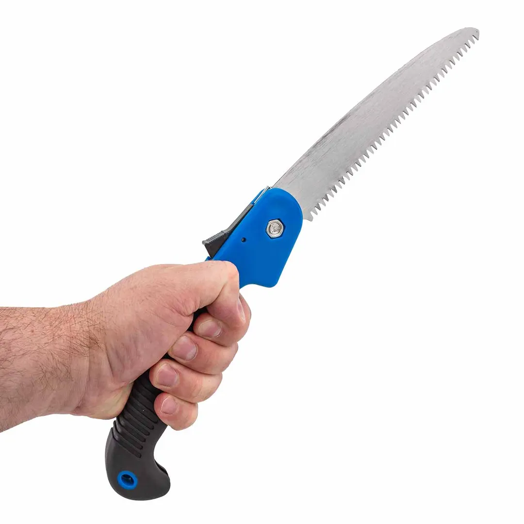 Пила складная садовая предназначена для сырой и сухой древесины при работе на садовом и дачном участке. Длина лезвия пилы ручной 180 мм, длина рукоятки 220 мм, длина всей пилы в разложенном виде 400 мм, вес 210г. Лезвие пилы выполнено из высококачественной стали. Пила садовая имеет прорезиненную двухкомпонентную рукоятку, предотвращая скольжение руки обеспечивая удобный захват. Для безопасности лезвие в пиле садовой фиксируется в раскрытом и сложенном состоянии.Преимущества работы с нами