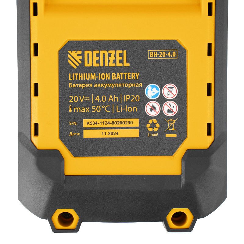 - Универсальность — аккумулятор совместим со всеми инструментами единой платформы Denzel Power System 20V.