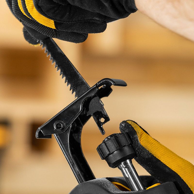- Быстрая замена пильного полотна — благодаря быстрозажимному замку установка оснастки не занимает много времени.