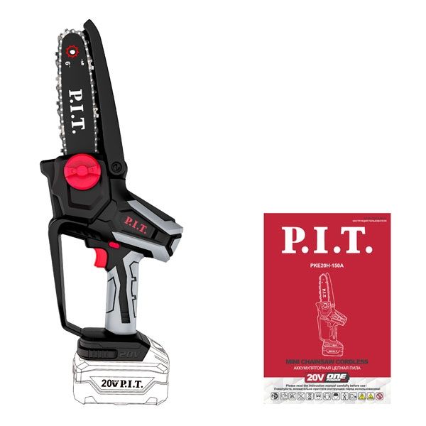 Пила цепная аккум. мини SOLO, 20В, шина 6"/150мм, 3100об/мин, ск. цепи 6,5 м/с PIT PKE 20H-150A, описание:
