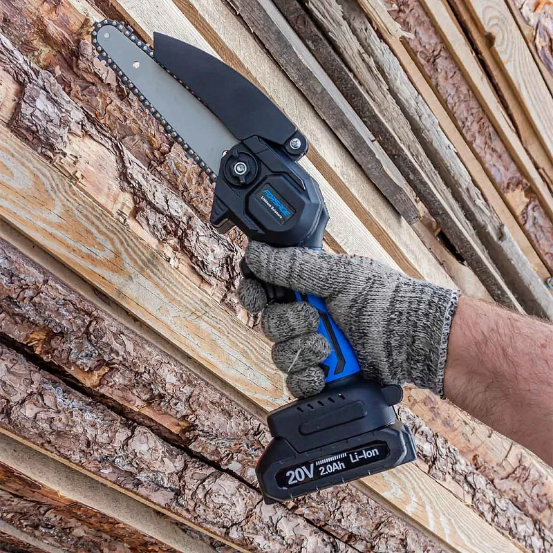 Пила цепная аккумуляторная, 2 шины, 4 цепи, 1 АКБ Li-ion 20V, 2.0Ah, з/у Forsage F-CSR1018E