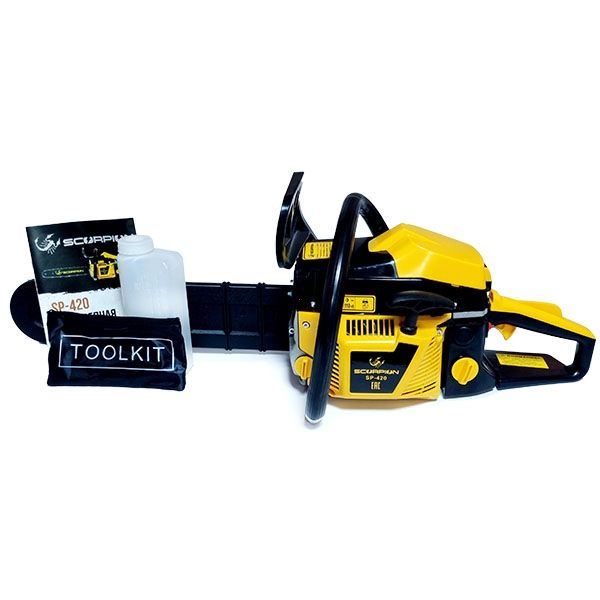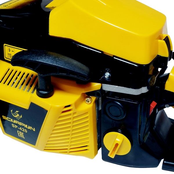 Пила цепная бензиновая, 1900 Вт/3,0 л.с., 43 см. куб., шина 380 мм/15", цепь 0,325-1,5-64 SCORPION SP-420, описание: