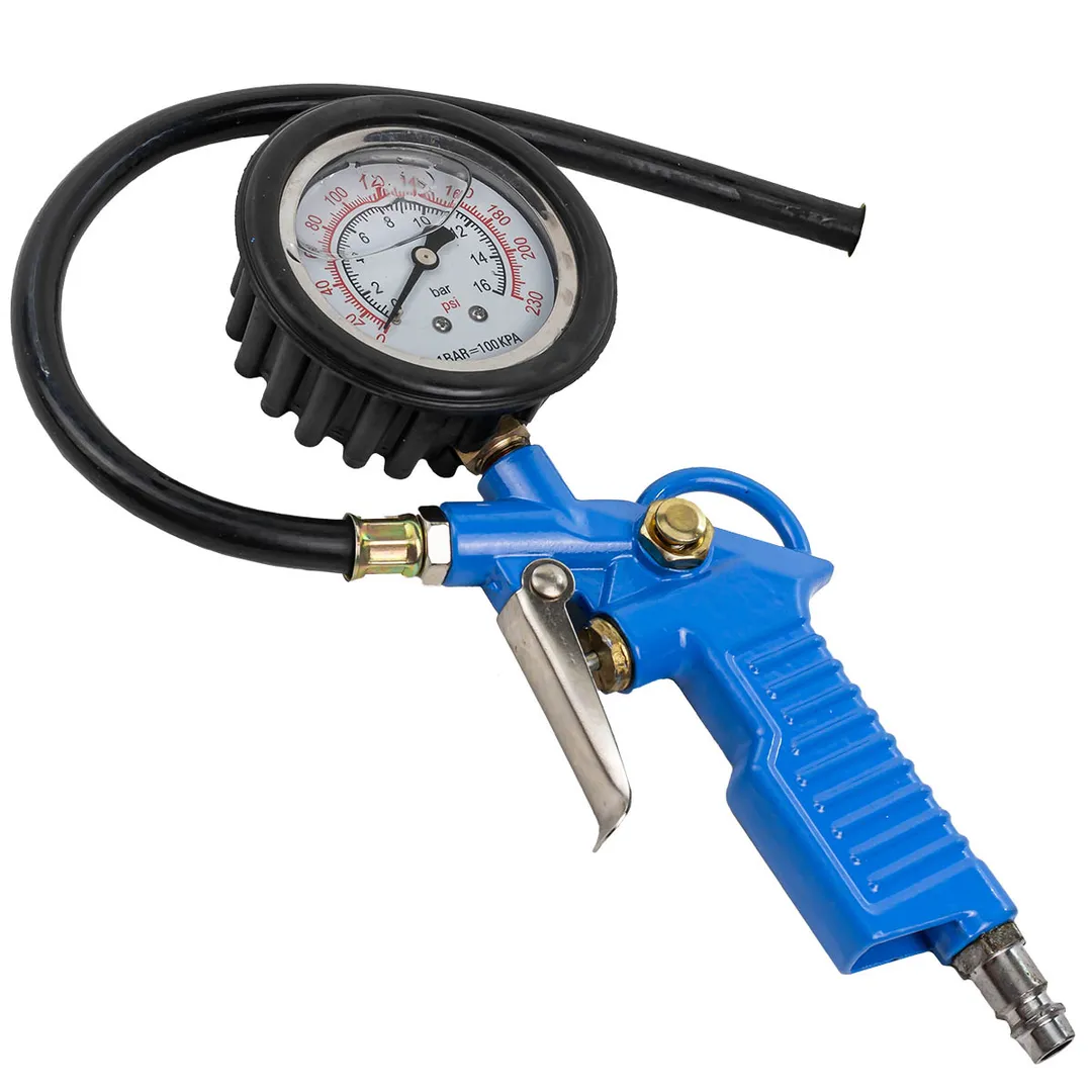 Пистолет для подкачки шин с аналоговым манометром и шлангом 0-16 бар - это удобный инструмент для надувания шин автомобилей, мотоциклов и других транспортных средств. Он оснащен манометром, который позволяет контролировать давление в шинах, и шлангом с коннектором для подключения к шине. Манометр имеет диапазон измерения от 0 до 16 бар и заполнен глицерином, что обеспечивает более точное измерение давления и защищает манометр от вибрации и ударов. Шланг пистолета для подкачки шин выполнен из прочного материала и имеет достаточную длину для удобства использования. Коннектор для подключения к шине также выполнен из прочного материала и обеспечивает надежное соединение. Пистолет для подкачки шин с аналоговым манометром и шлангом 0-16 бар является необходимым инструментом для водителей, которые хотят контролировать давление в своих шинах и обеспечить безопасность на дороге. Он легок в использовании и удобен для хранения в багажнике автомобиля.. Используется на шиномонтажах, СТО, в мастерских, подходит для гаража.Преимущества работы с нами