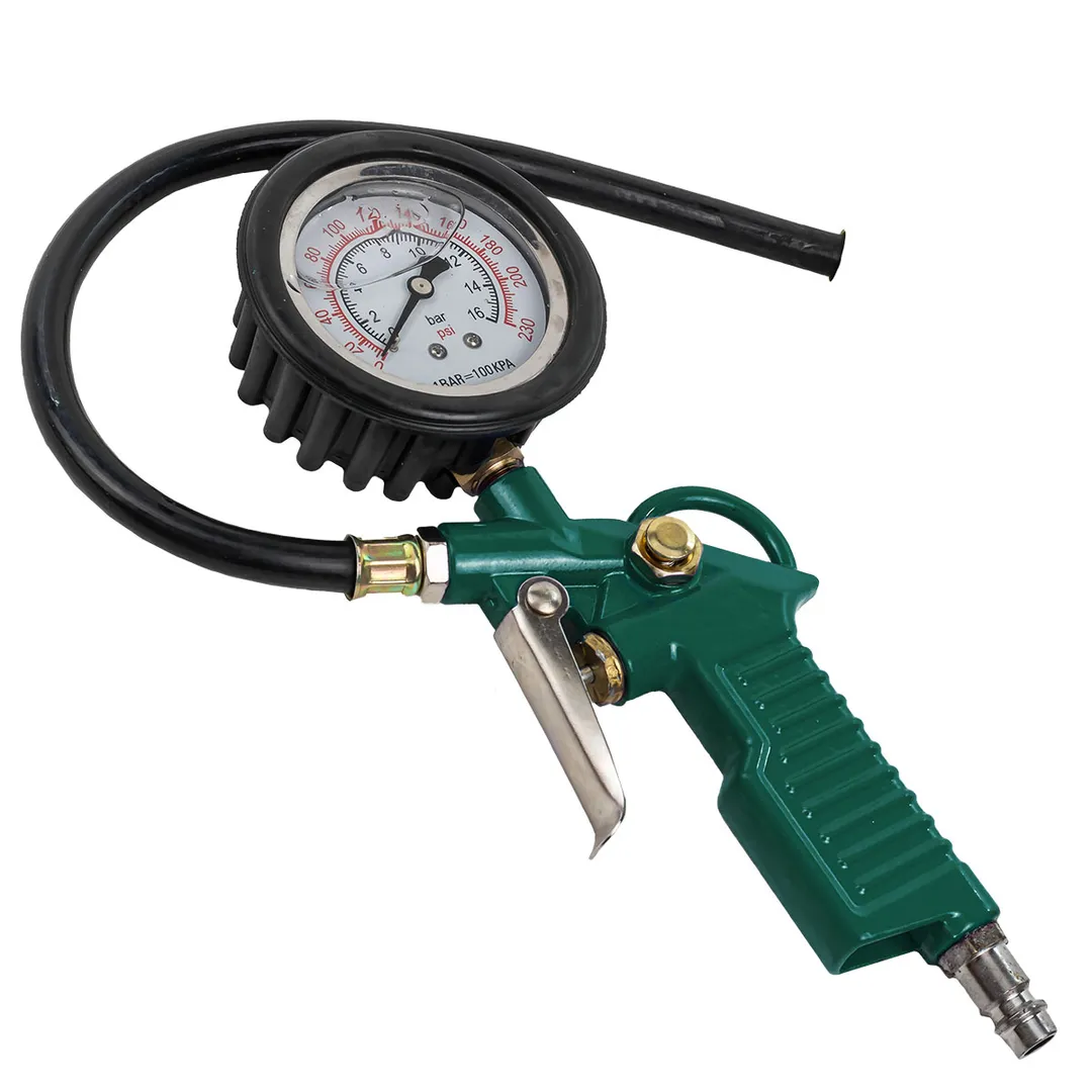 Пистолет для подкачки шин с аналоговым манометром и шлангом 0-16 бар - это удобный инструмент для надувания шин автомобилей, мотоциклов и других транспортных средств. Он оснащен манометром, который позволяет контролировать давление в шинах, и шлангом с коннектором для подключения к шине. Манометр имеет диапазон измерения от 0 до 16 бар и заполнен глицерином, что обеспечивает более точное измерение давления и защищает манометр от вибрации и ударов. Шланг пистолета для подкачки шин выполнен из прочного материала и имеет достаточную длину для удобства использования. Коннектор для подключения к шине также выполнен из прочного материала и обеспечивает надежное соединение. Пистолет для подкачки шин с аналоговым манометром и шлангом 0-16 бар является необходимым инструментом для водителей, которые хотят контролировать давление в своих шинах и обеспечить безопасность на дороге. Он легок в использовании и удобен для хранения в багажнике автомобиля.. Используется на шиномонтажах, СТО, в мастерских, подходит для гаража.Преимущества работы с нами
