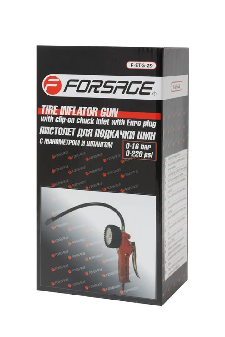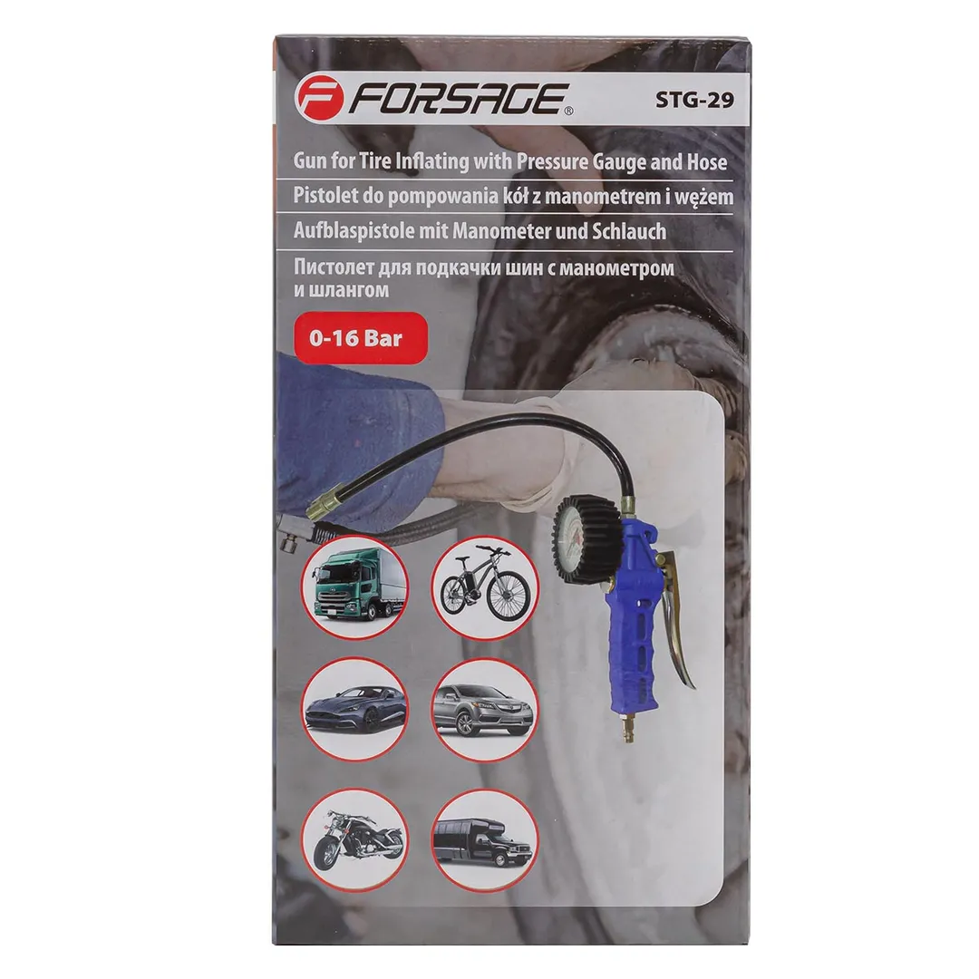 Пистолет для подкачки шин с манометром и шлангом 0-16Bar Forsage F-STG-29