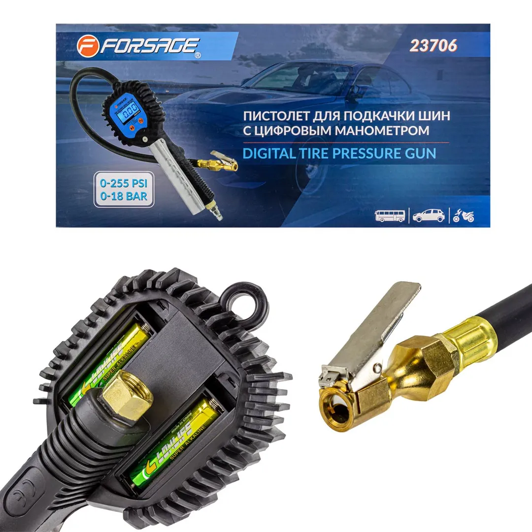 Пистолет для подкачки шин с цифровым манометром Forsage F-23706, описание и характеристики:
